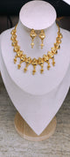 Elevate your jewellery collection with this beautifully crafted gold-plated necklace Designed with intricate elements and a classic leaf motif, this piece offers the richness of real gold look while remaining lightweight and comfortable. The matte gold finish gives it a premium traditional look, perfect for sarees, kurtis, lehengas, and mekhla chador