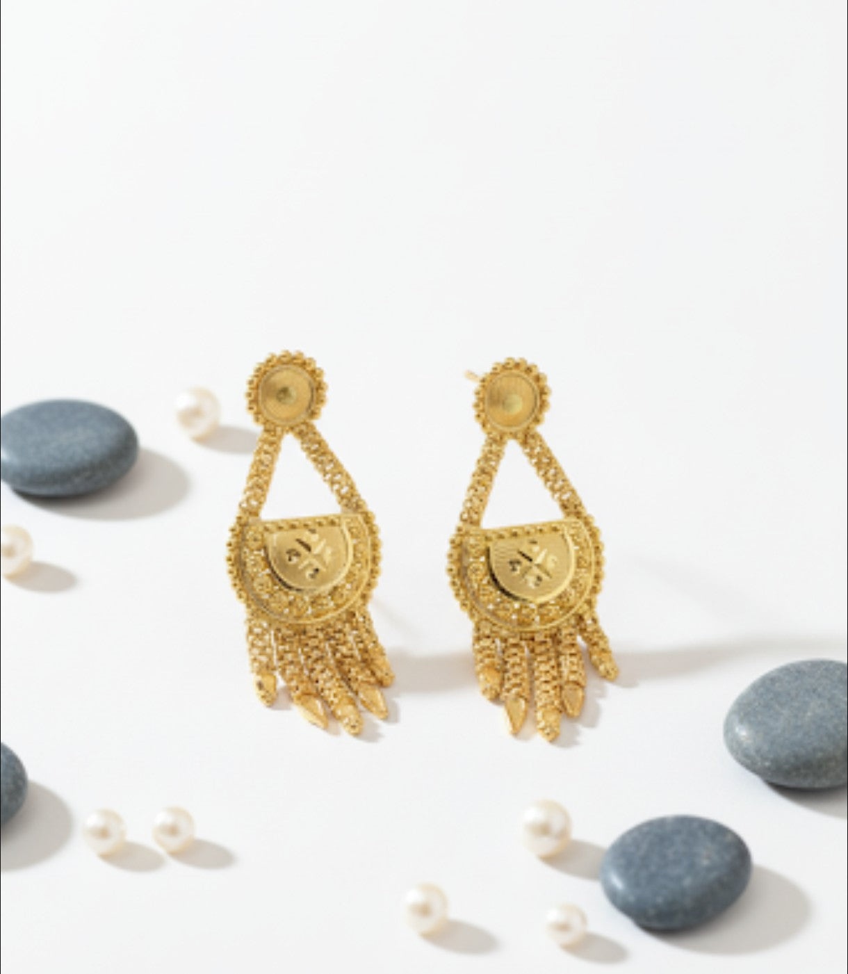 Exquisitely designed to combine traditional charm with modern elegance, these 24K gold plated earrings are crafted from high-quality metal and finished with a thick layer of pure 24-carat gold for a rich, lasting shine. Each pair features fine detailing and a smooth, polished surface that enhances its luxurious appeal.
