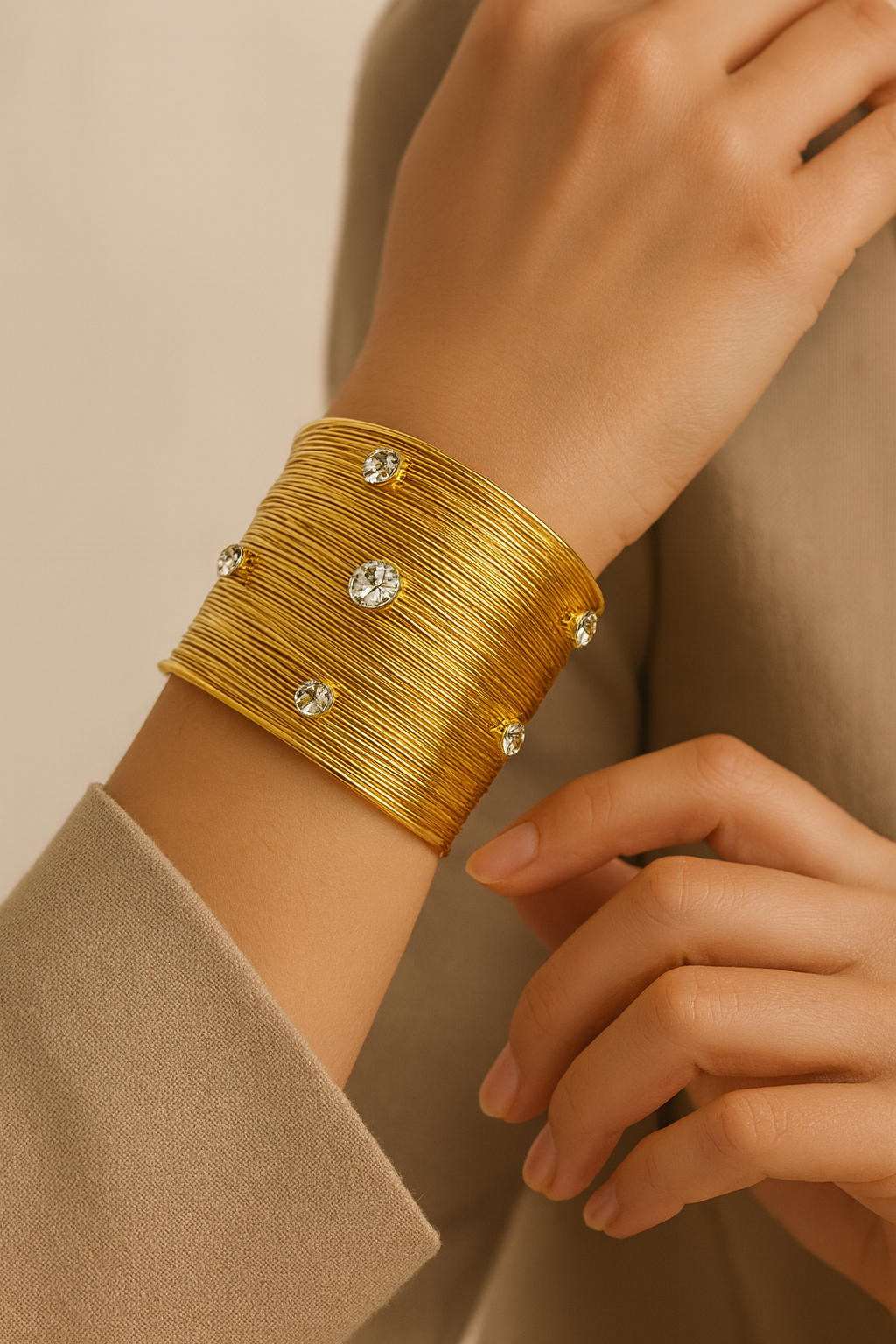 Elevate your style with this 24K gold plated bracelet, crafted to look and shine like real gold. Perfect for daily wear, it’s lightweight, durable, and designed for all-day comfort. Comes with a 6-month color warranty for lasting shine and elegance.