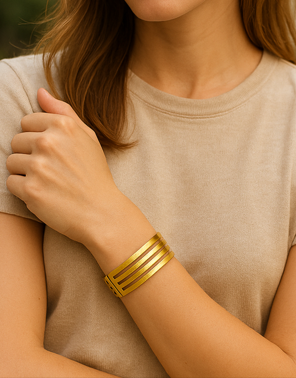 Elevate your style with this 24K gold plated bracelet, crafted to look and shine like real gold. Perfect for daily wear, it’s lightweight, durable, and designed for all-day comfort. Comes with a 6-month color warranty for lasting shine and elegance.