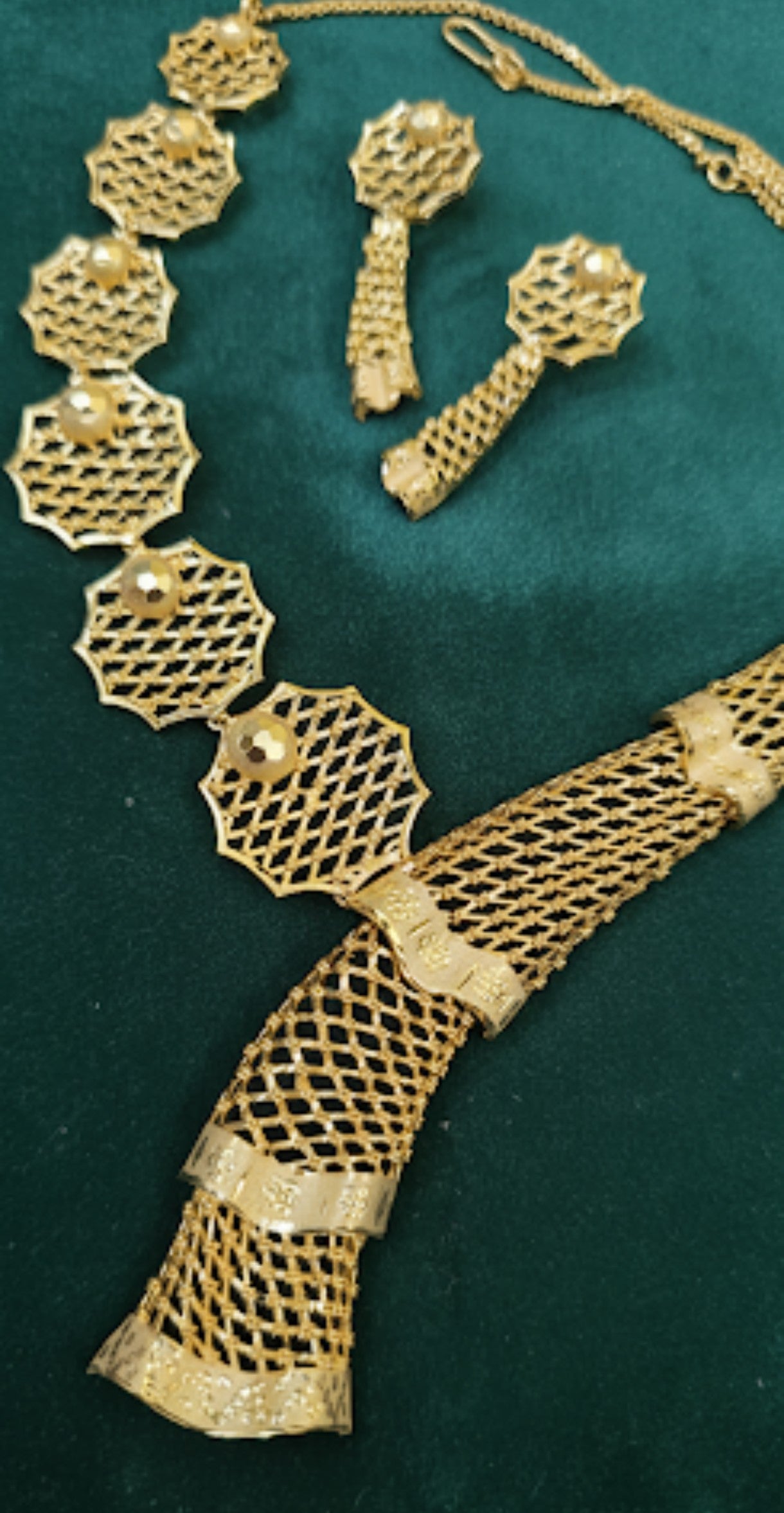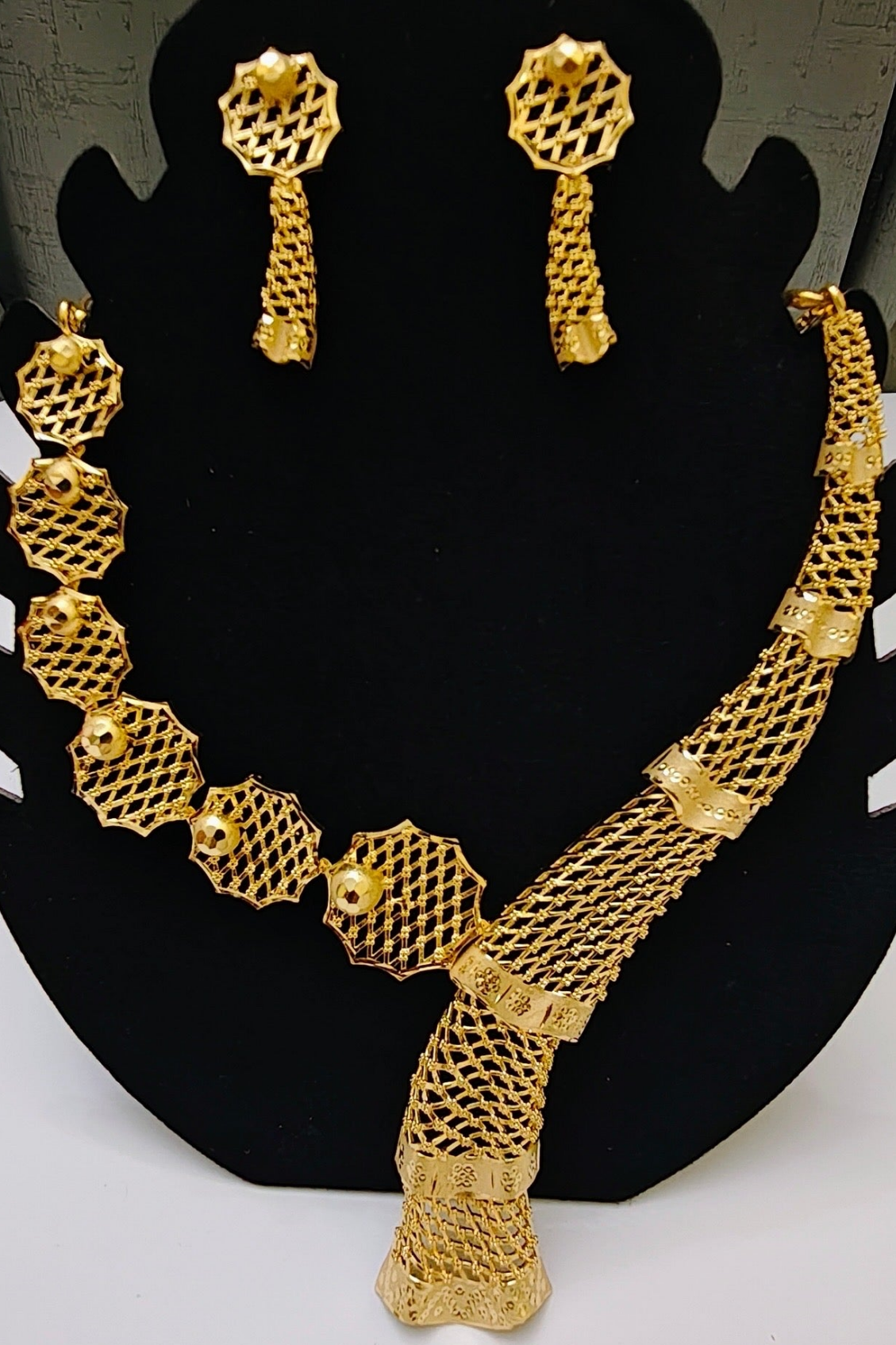 Experience the ultimate golden glow! This exquisite 24-Karat Gold Plated Necklace captures the pure, rich radiance of solid gold look a like, delivering instant glamour to traditional look.
